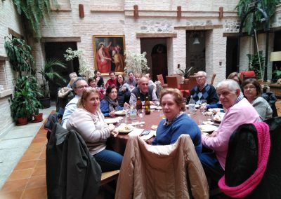 La visita comenzó en el barrio de Santa Leocadia, para pasear por las calles y plazas de la emblemática e histórica ciudad. El grupo pudo participar en la eucaristía en el Convento del Espíritu Santo de Padres Carmelitas, y compartir la comida en el claustro de este espacio monumental, rodeados de arte e historia. También se visitó la exposición ‘La hiedra y el ciprés’ en torno a Santa Teresa de Jesús y San Juan de la Cruz.