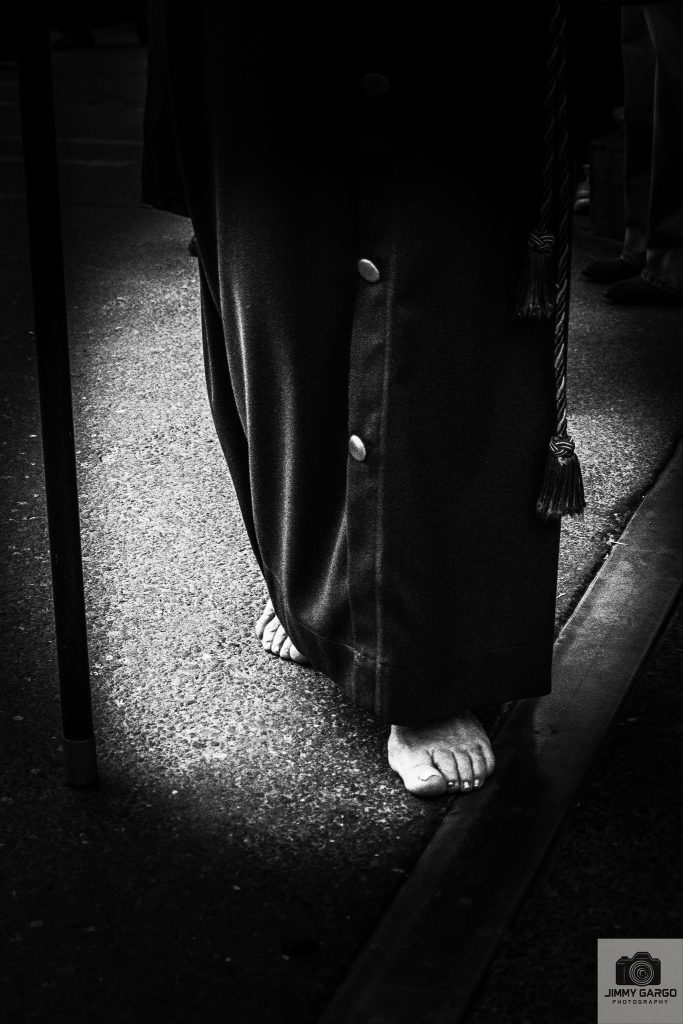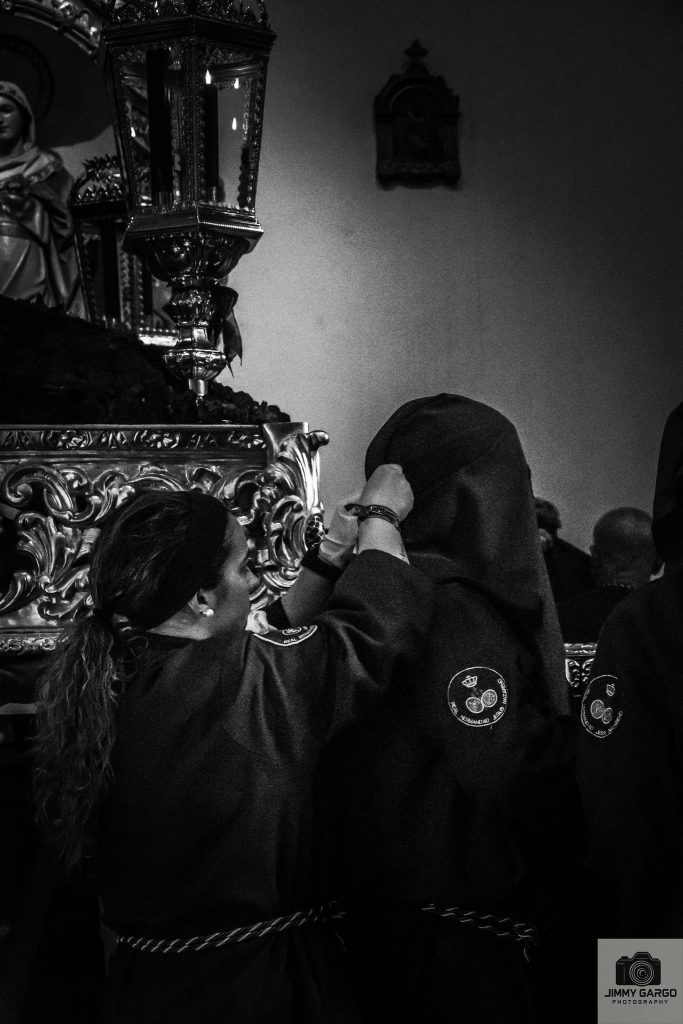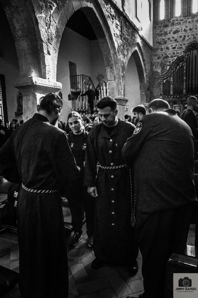 Desde la salida, se percibía un ambiente de recogimiento especial. Los nazarenos, con sus túnicas perfectamente dispuestas, avanzaban con solemnidad, marcando el ritmo de una jornada cargada de simbolismo y fe. Cada detalle —la cera encendida, el incienso elevándose en el aire, la cuidada disposición del cortejo— contribuía a crear una estampa de profunda espiritualidad.
